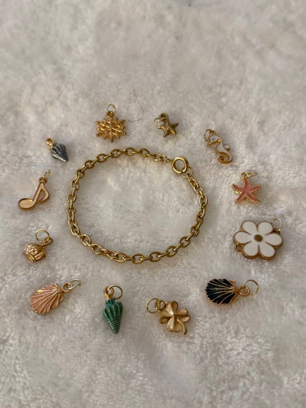 This one of a kind gold chain bracelet comes with 11 different charms to add that touch to your day. Having the charm separate helps really ✨match✨ and ✨customize✨ your day look.